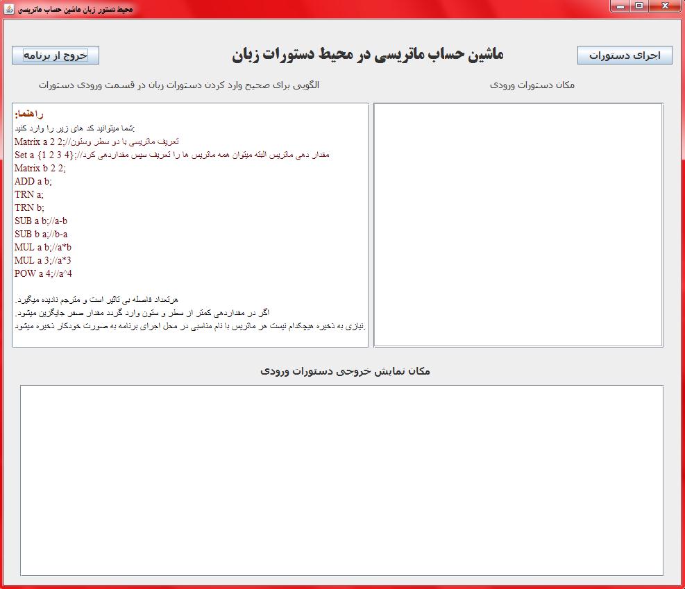 دریافت ماشین حساب ماتریسی با دو محیط واسط کاربری و دستور زبان LMCL با جاوا java ( به همراه سورس کامل برنامه ) با java با ارسال ایمیل به :