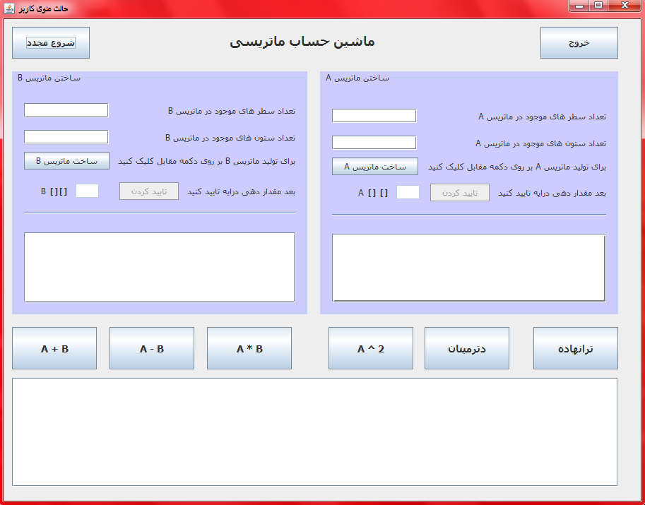 قسمت هایی از برنامه ماشین حساب ماتریسی رو در ذیل مشاهده می نمایید.